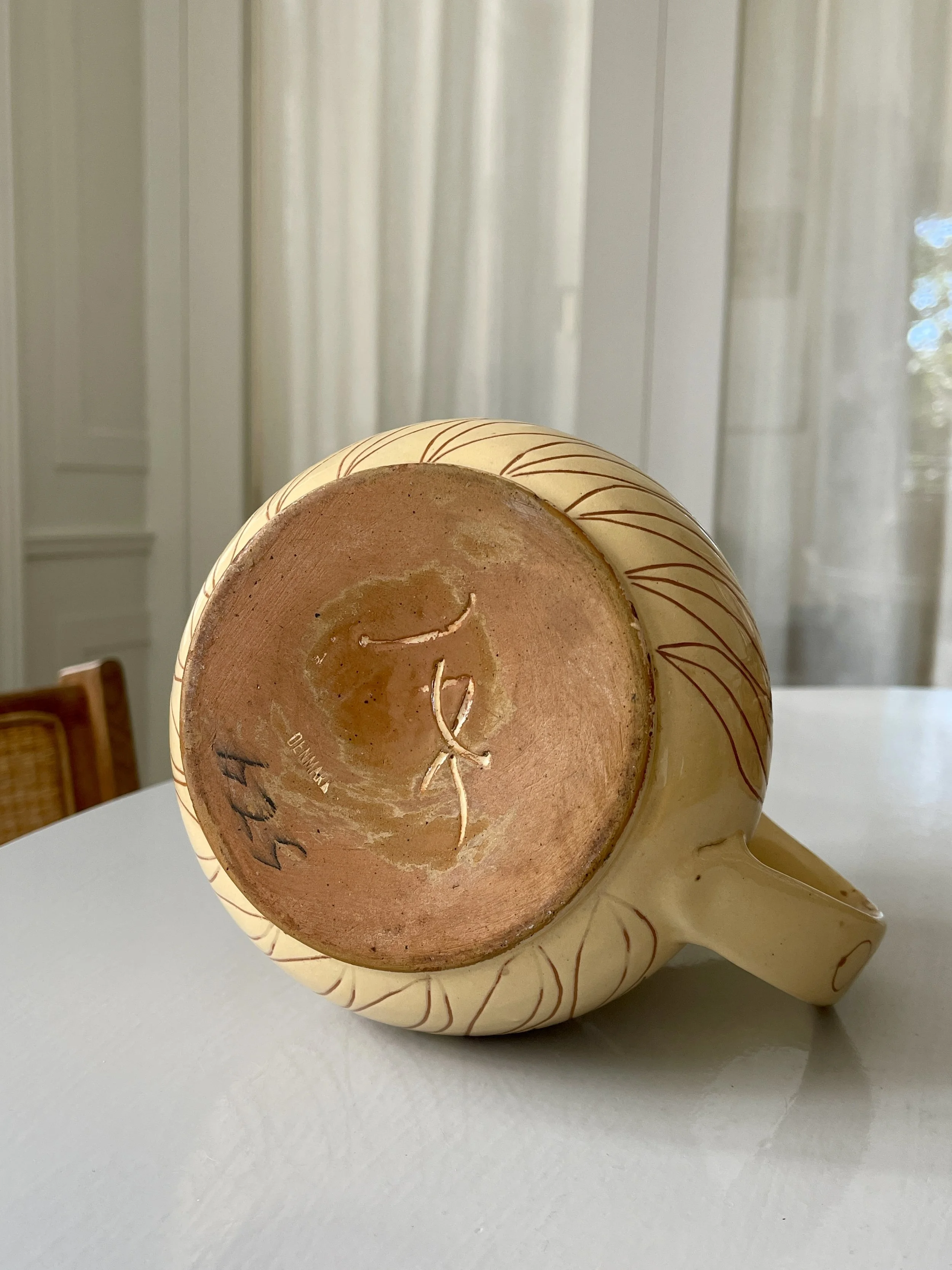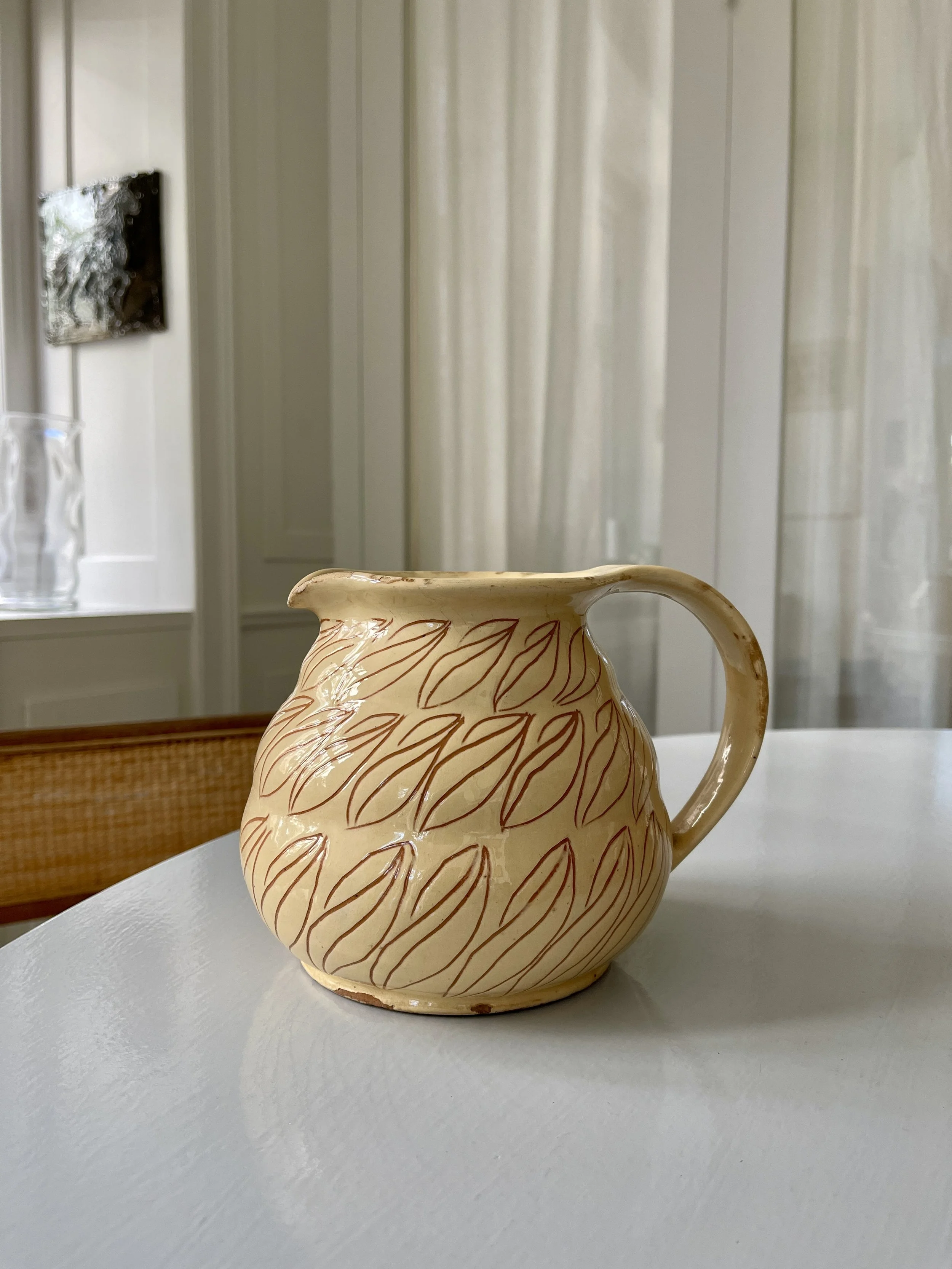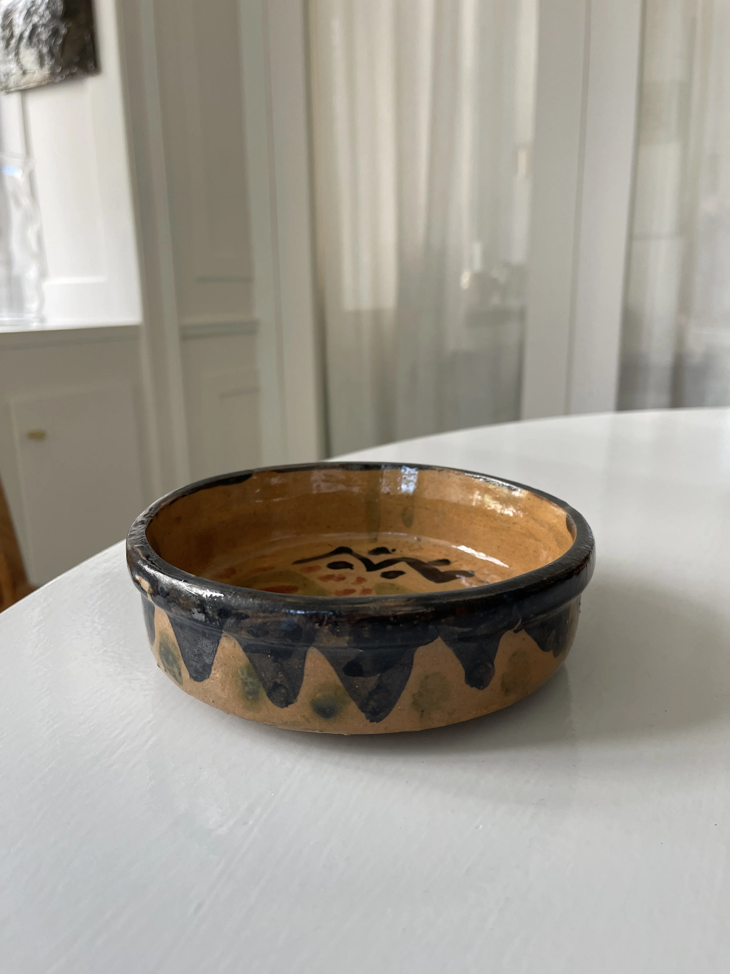 A small teapot from Hjorths Fabrik, a ceramics manufacturer based on Bornholm. This specific model comes from their “Pharmacy Series,” which is known for its distinctive brown apothecary glaze, a classic design that dates back to the 1920s.