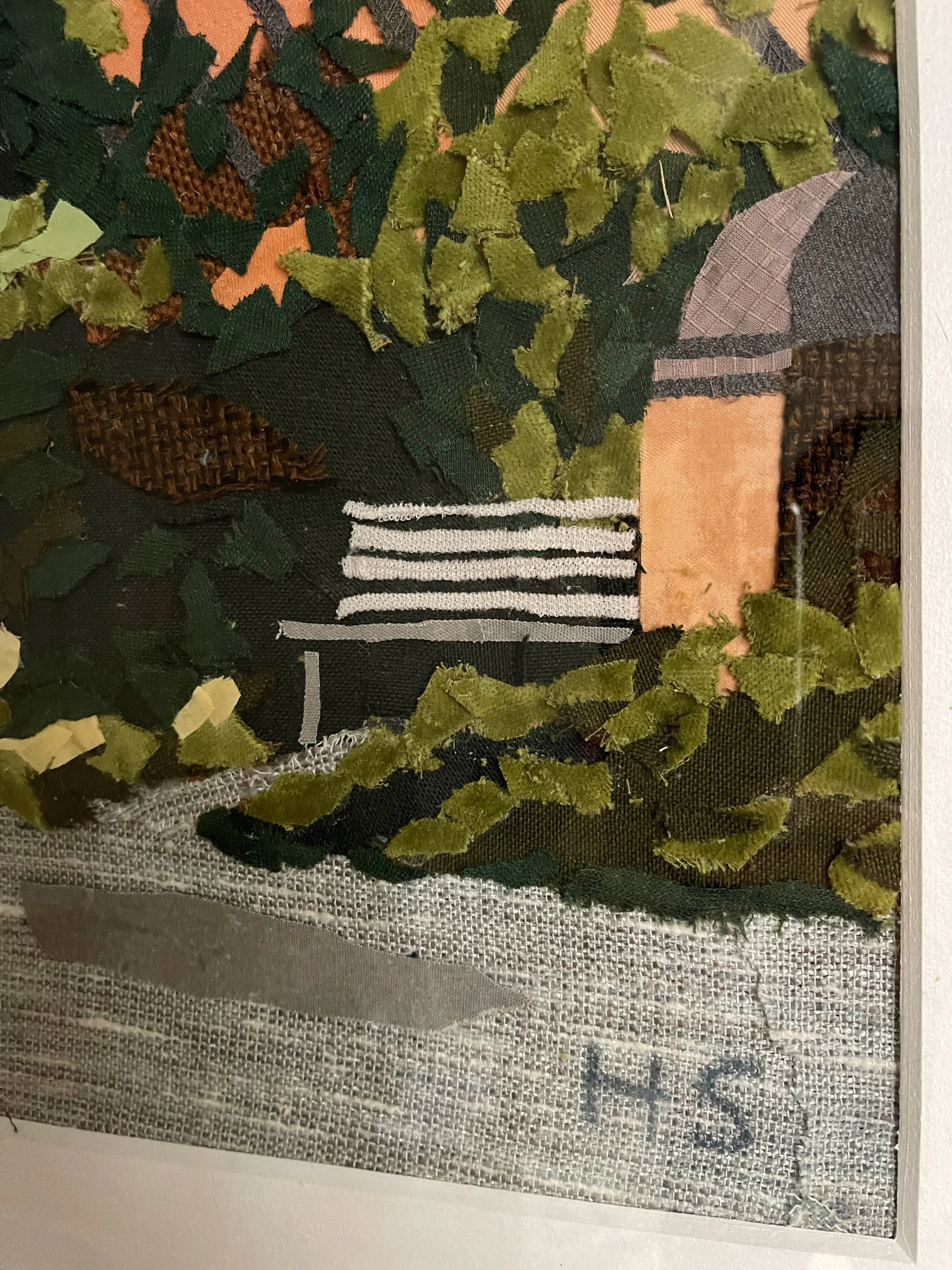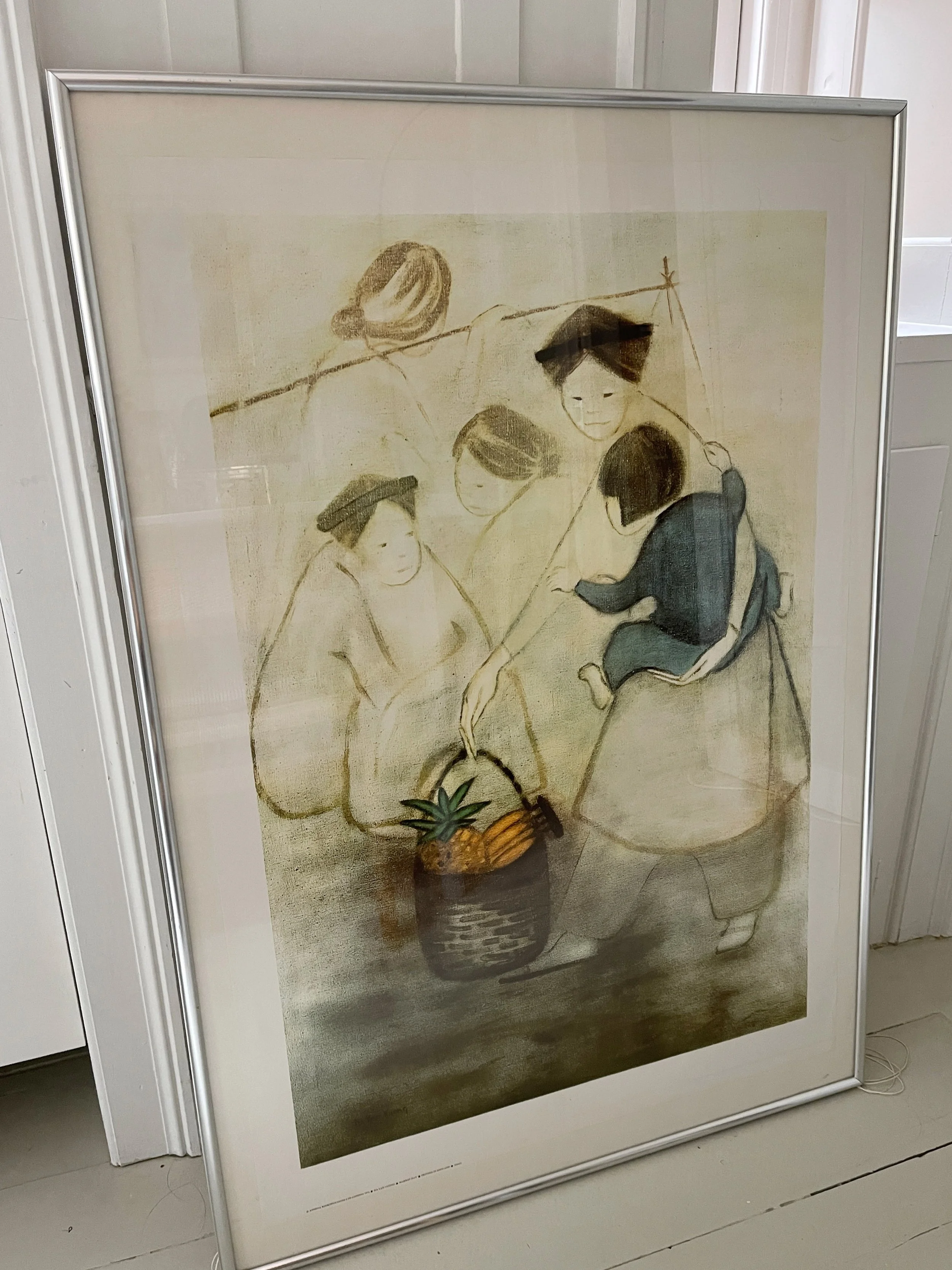 Composed in confident blocks of color — lilac, green, ochre, and deep blue — the work carries a joyful rhythm typical of Scandinavian modernist art from the 1970s.
