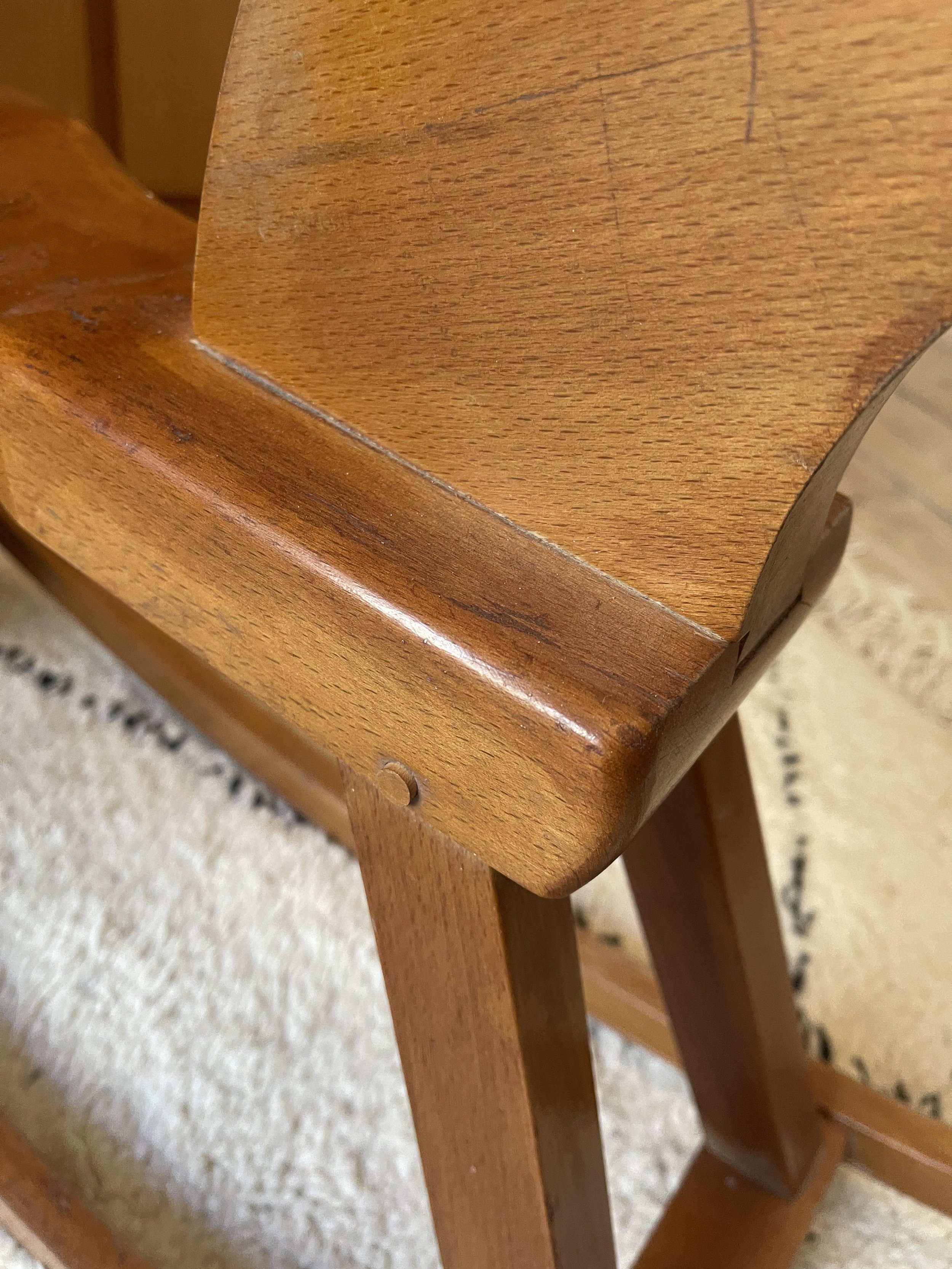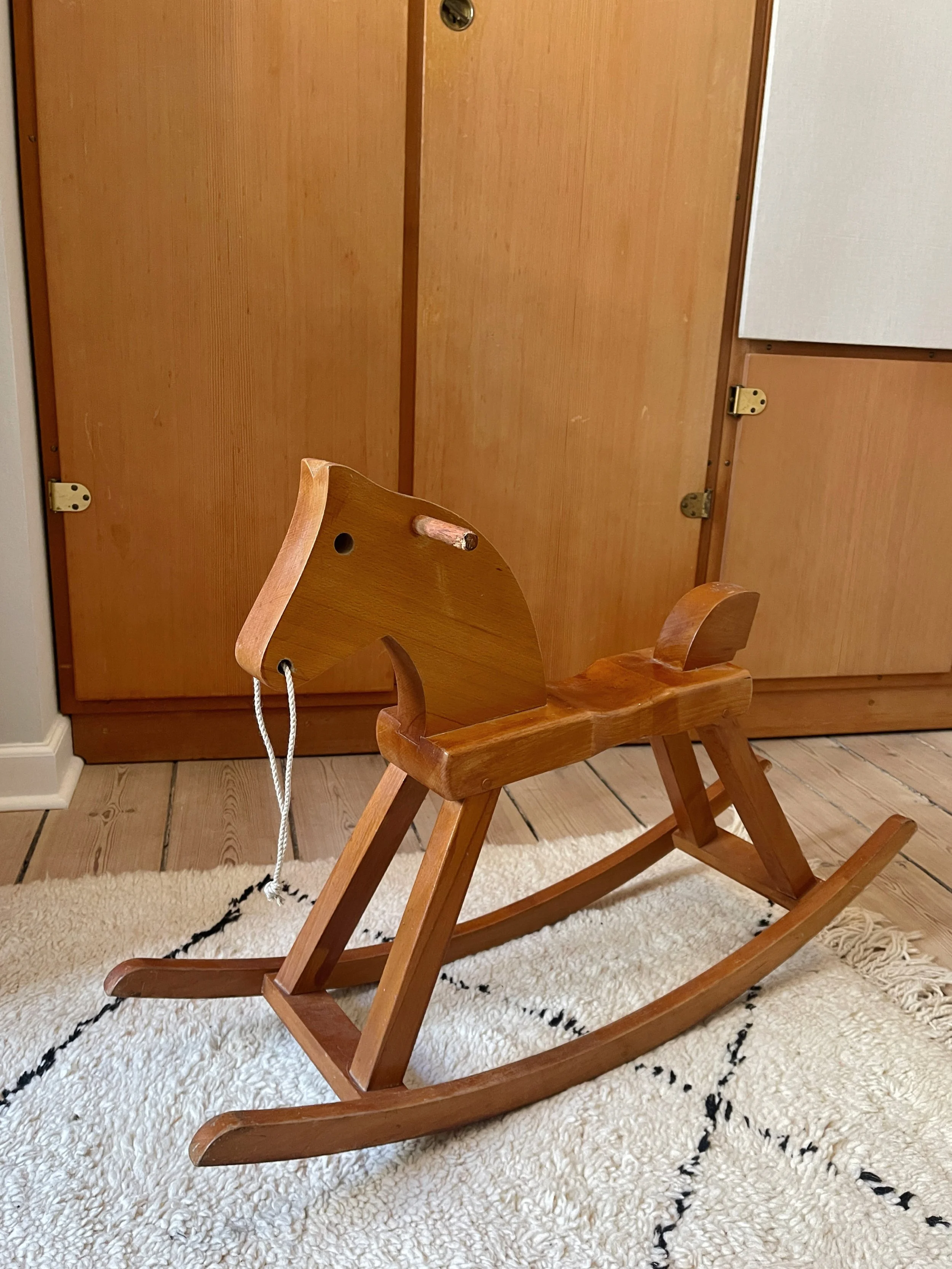 Lacquered beech rocking horse made and marked by Kay Bojesen, Mønsterbesk. Denmark 1936, and produced in the 1960s.