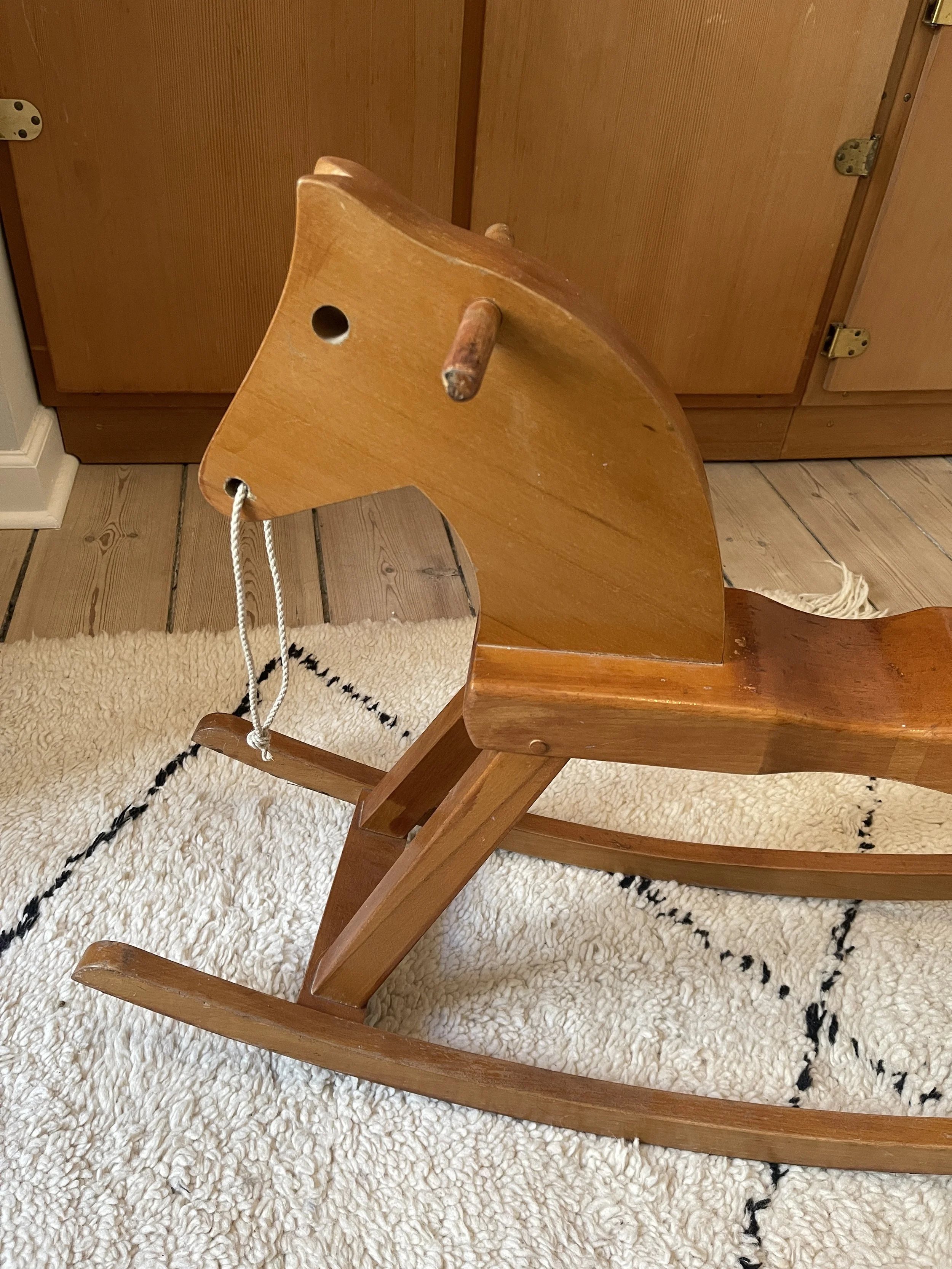 This rocking horse is a well-preserved example and has every characteristic of Kay Bojesen. Round and soft edges, with an appealing design. The body is made of beech, guaranteeing longevity and quality. The lines and joinery testify of great craftsmanship. The horse features an engraving at the bottom with the name, Kay Bojesen.